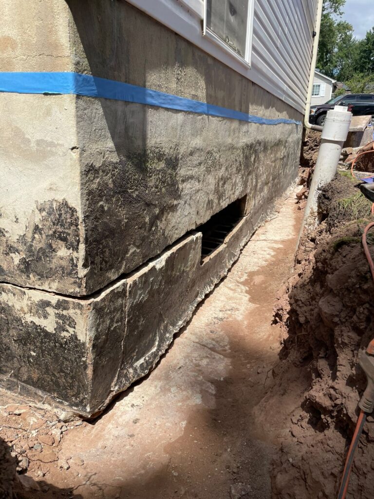 In cases where the foundation wall itself is damaged, we combine interior drainage with exterior waterproofing membrane for complete protection.